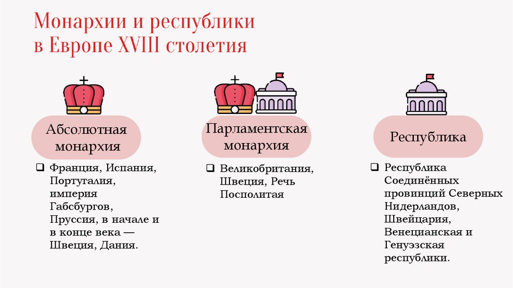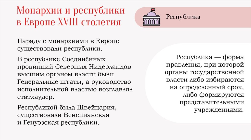 Монархии и республики в ЕвропеXVIII столетия