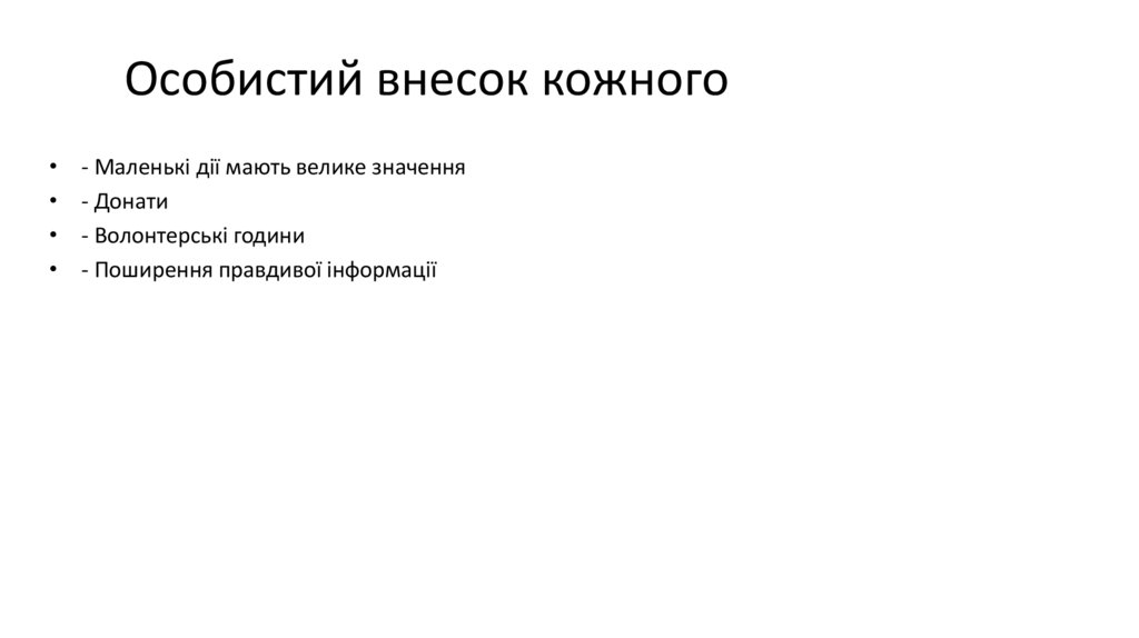 Особистий внесок кожного- Маленькі дії мають велике значення