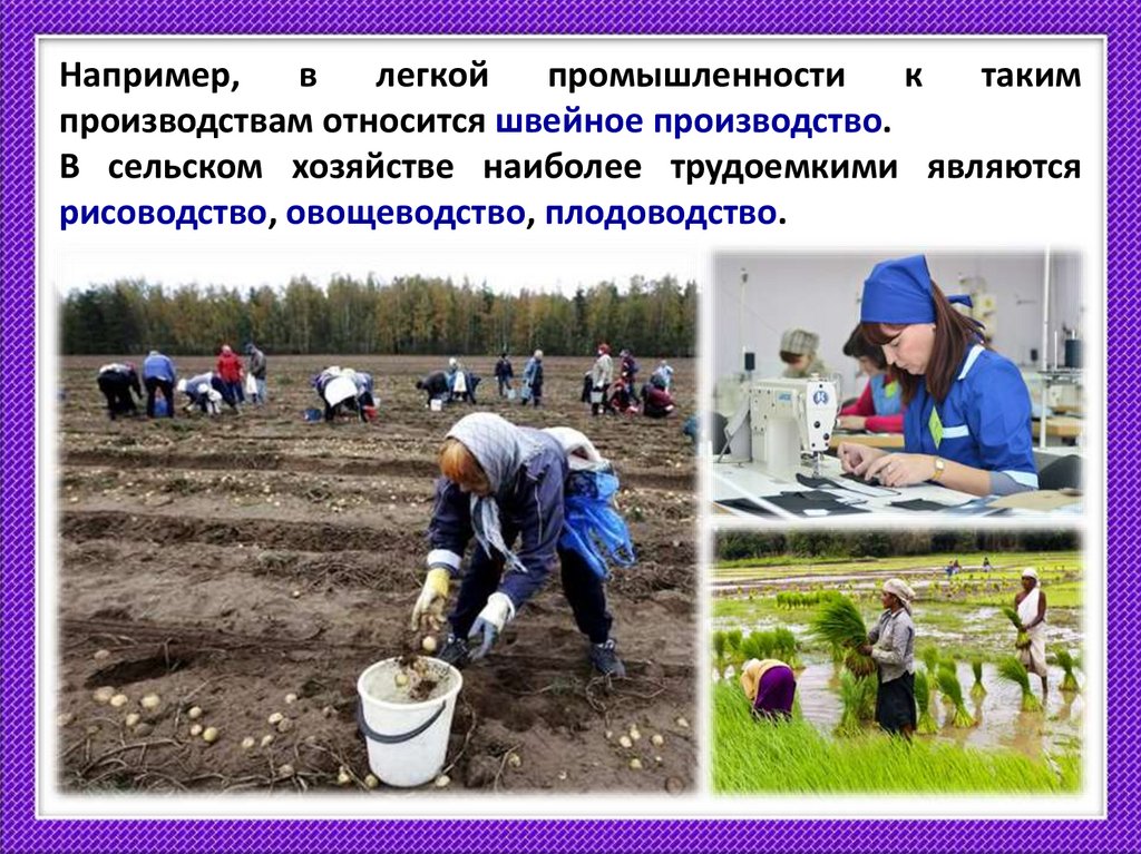 В сельском хозяйстве наиболее трудоемкими являются