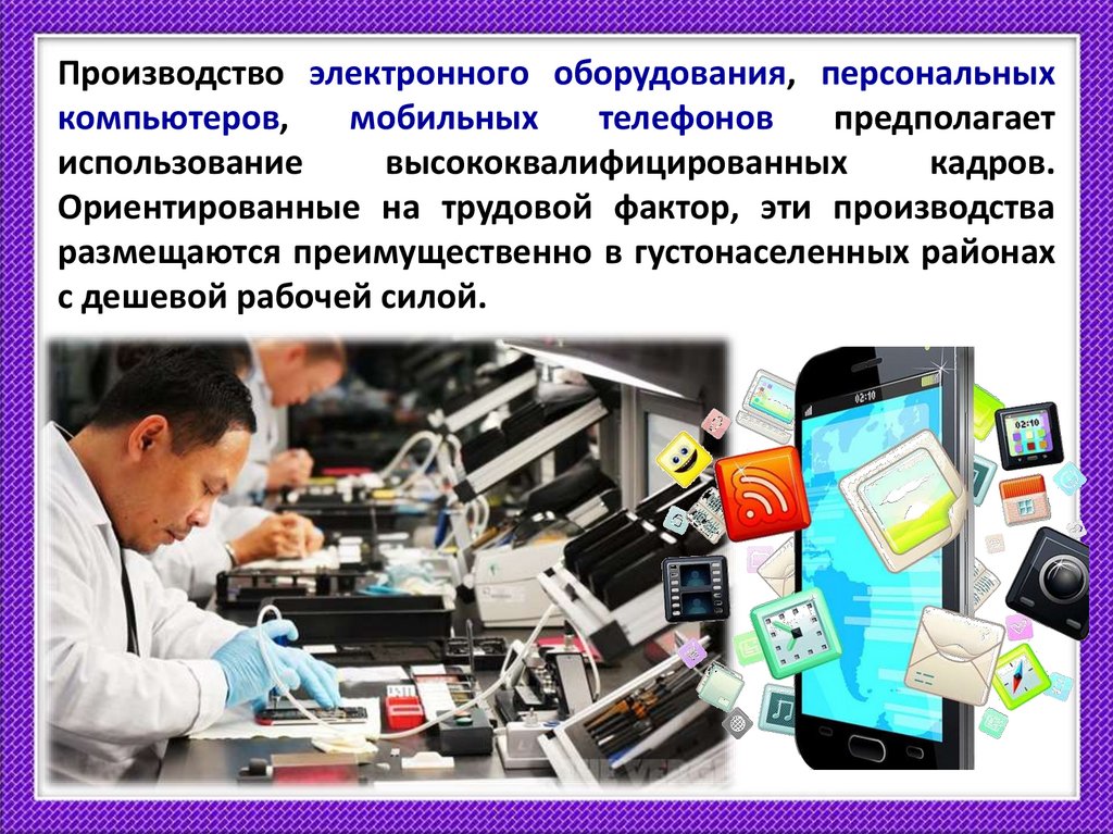 Производство электронного оборудования, персональныхкомпьютеров,