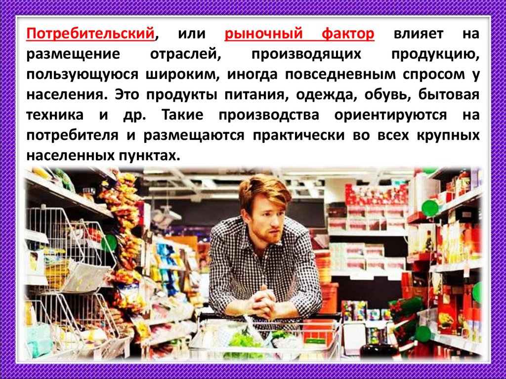 Потребительский, или рыночный фактор влияет наразмещение
