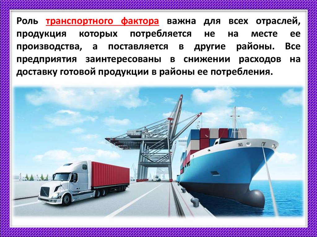 Роль транспортного фактора важна для всех отраслей,продукция которых потребляется не на месте ее