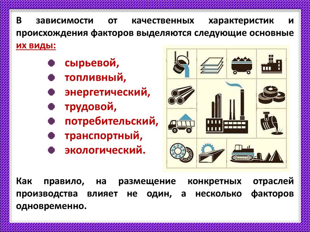 производства влияет не один, а несколько факторов