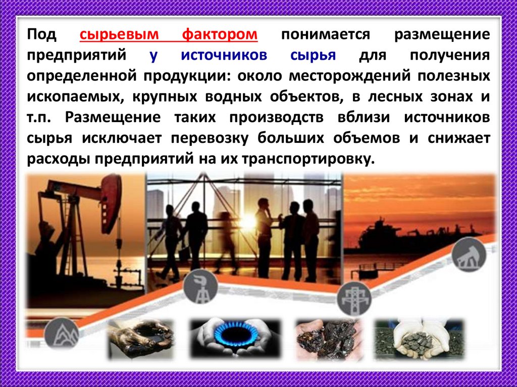 Под сырьевым фактором понимается размещениепредприятий у источников сырья для получения