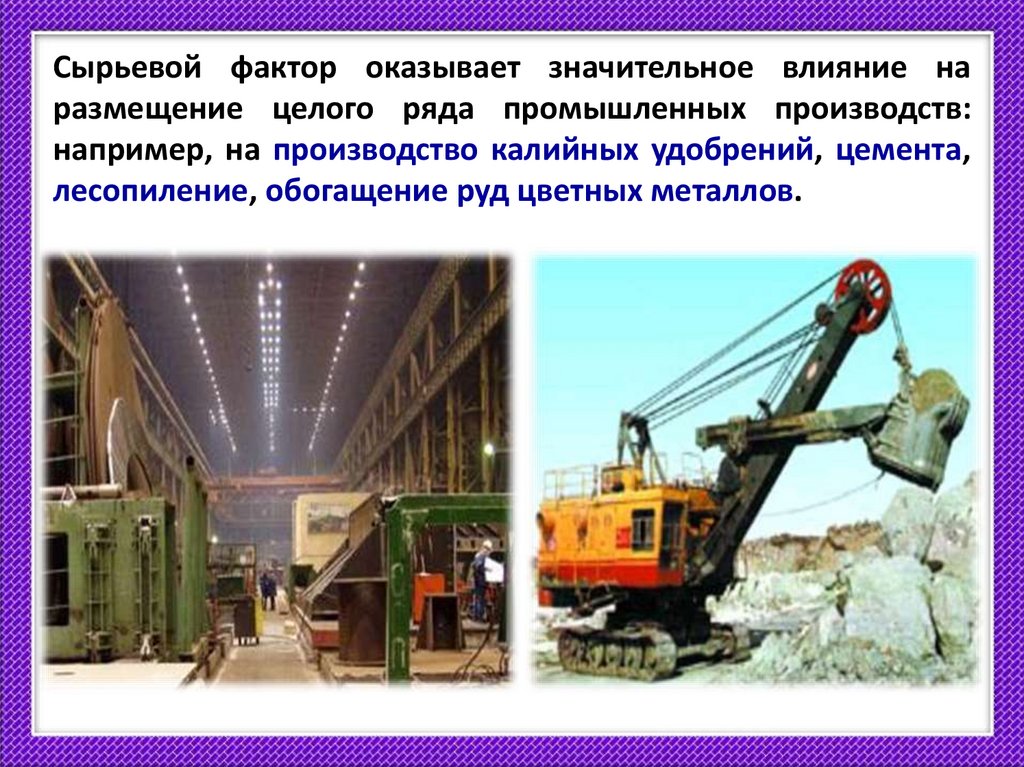 Сырьевой фактор оказывает значительное влияние наразмещение целого ряда промышленных производств: