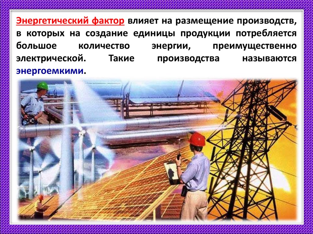 Энергетический фактор влияет на размещение производств,в которых на создание единицы продукции потребляется