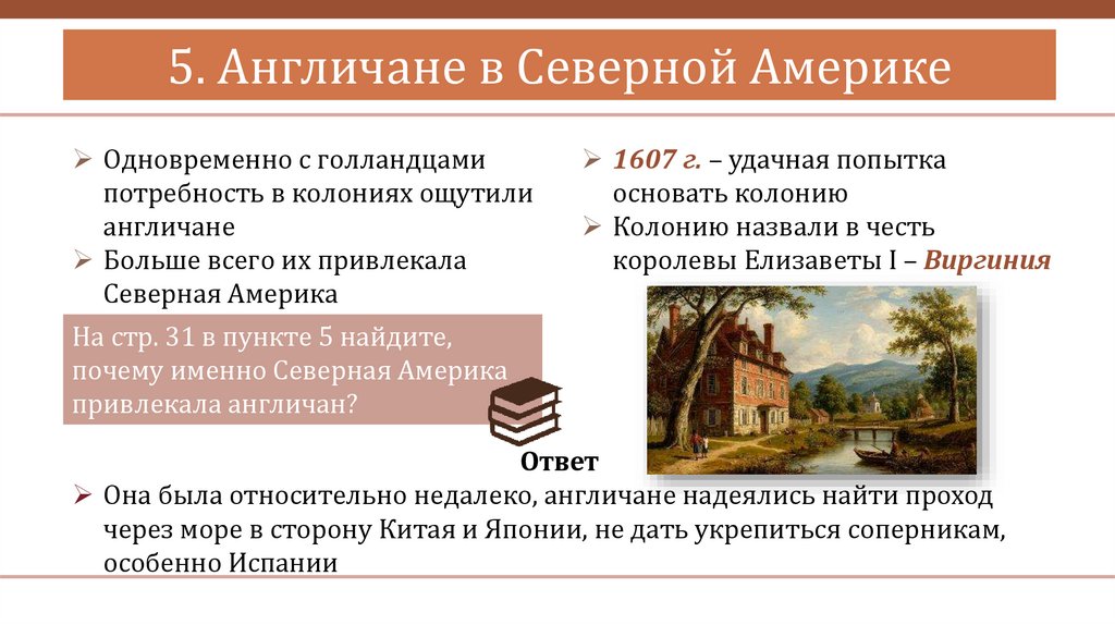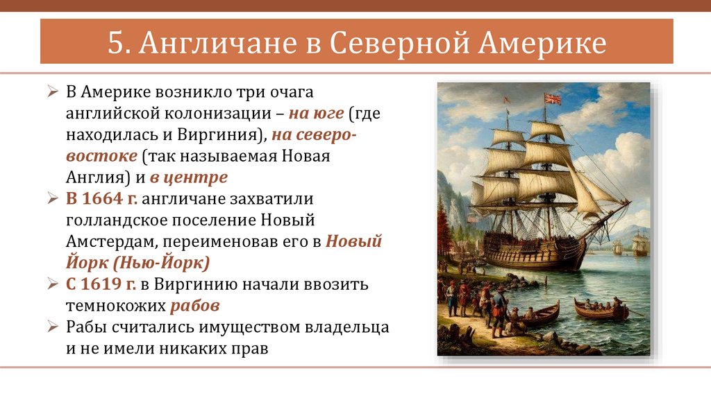 5. Англичане в Северной АмерикеОдновременно с голландцами