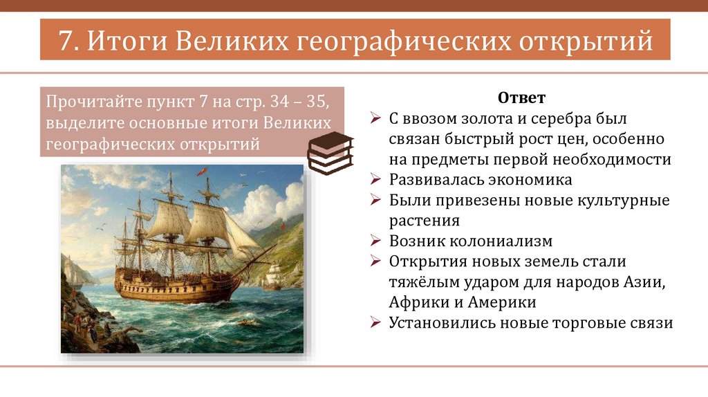 7. Итоги Великих географических открытийПрочитайте пункт 7 на стр. 34 – 35,