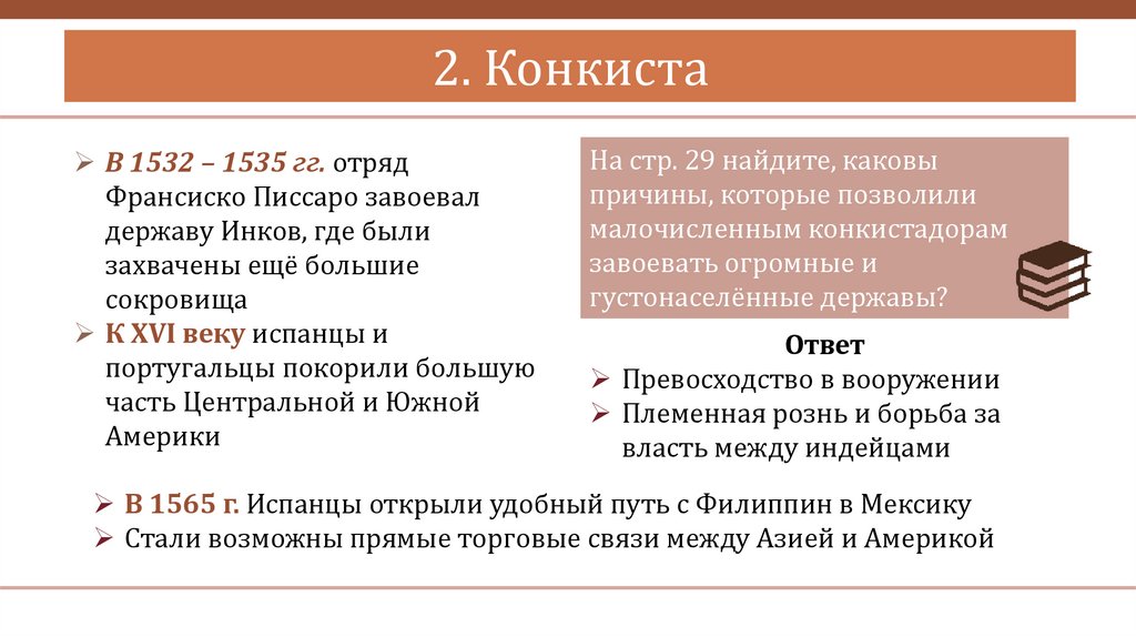 2. КонкистаКонкиста – завоевание испанцами