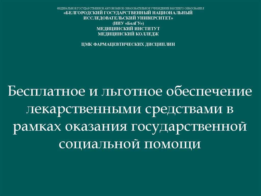 Бесплатное и льготное обеспечение лекарственными средствами в рамках оказания государственной социальной помощи