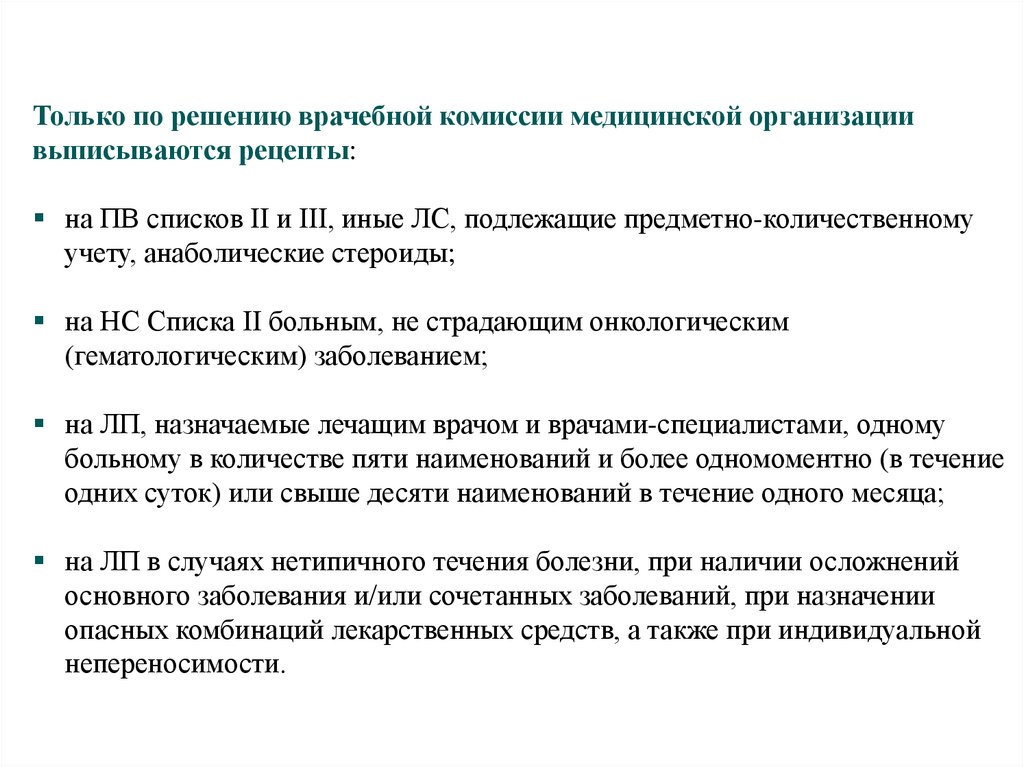 Только по решению врачебной комиссии медицинской организациивыписываются рецепты: