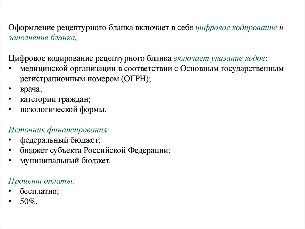 Оформление рецептурного бланка включает в себя цифровое кодирование изаполнение бланка.