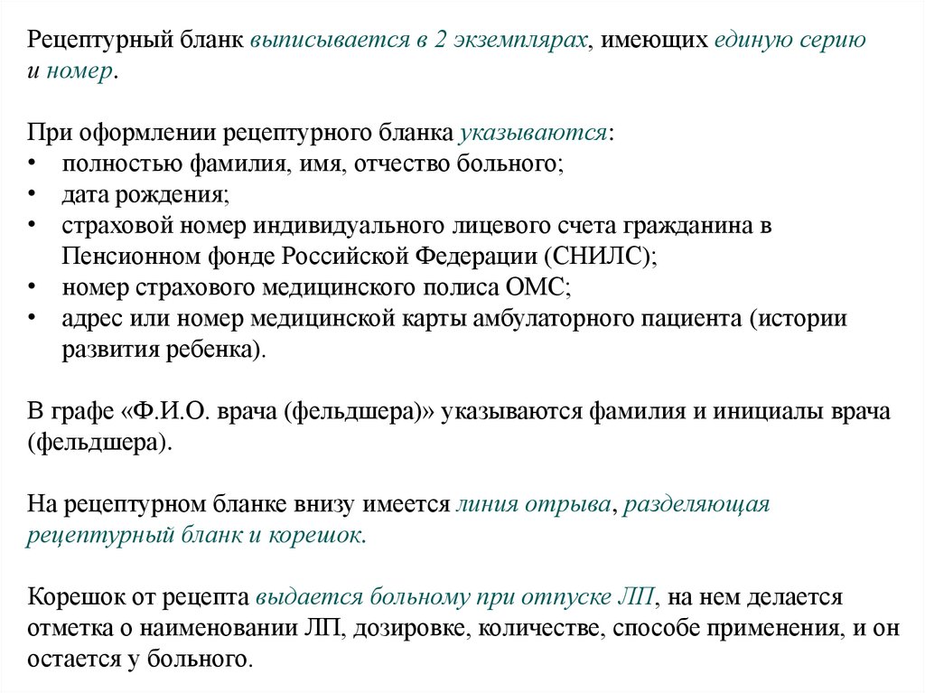 Рецепт выписывается врачом (фельдшером) в 2 экземплярах. Один экземпляр рецепта