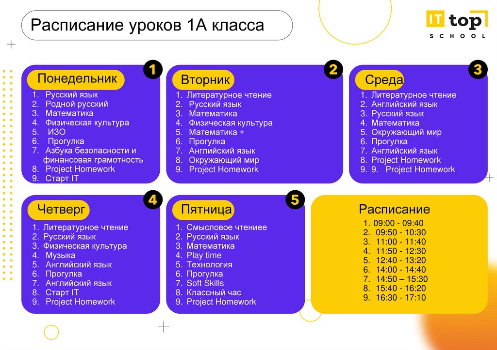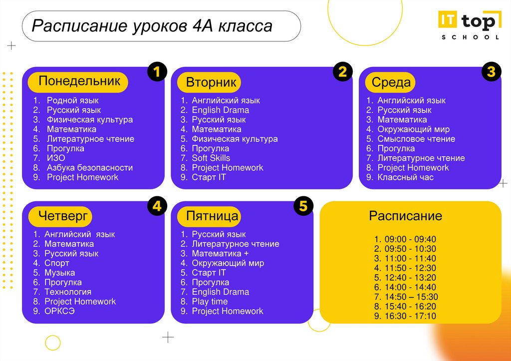 РАСПИСАНИЕ УРОКОВ 5А КЛАССАПонедельник