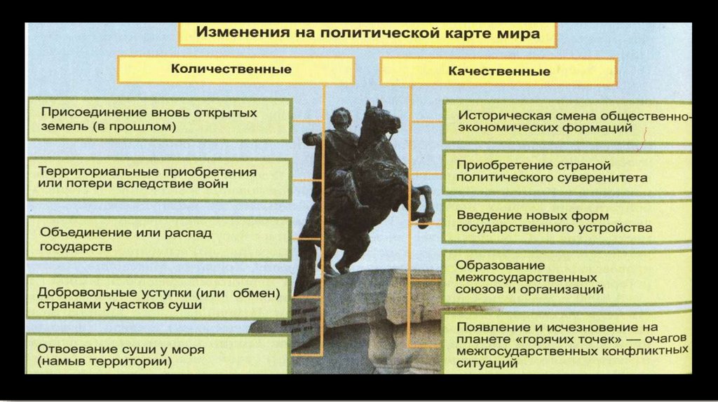 приобретение суверенитета, изменение площади государств, замену их столиц, изменение названия