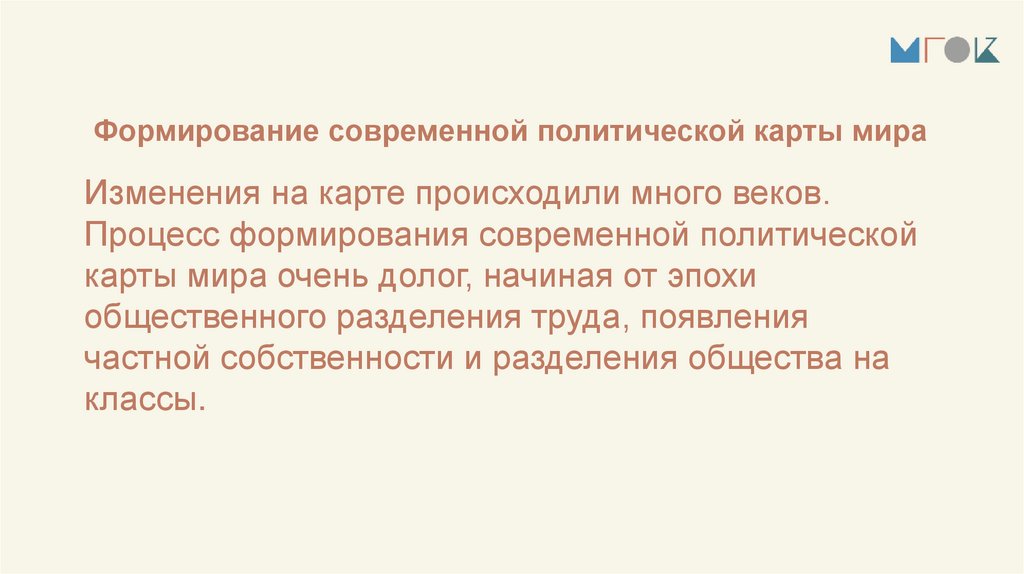Формирование современной политической карты мираИзменения на карте происходили много веков.