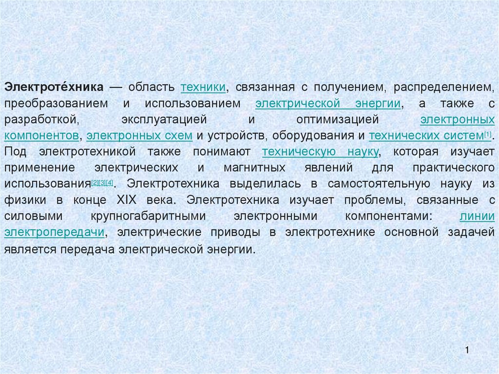 использования[2][3][4]. Электротехника выделилась в самостоятельную науку из