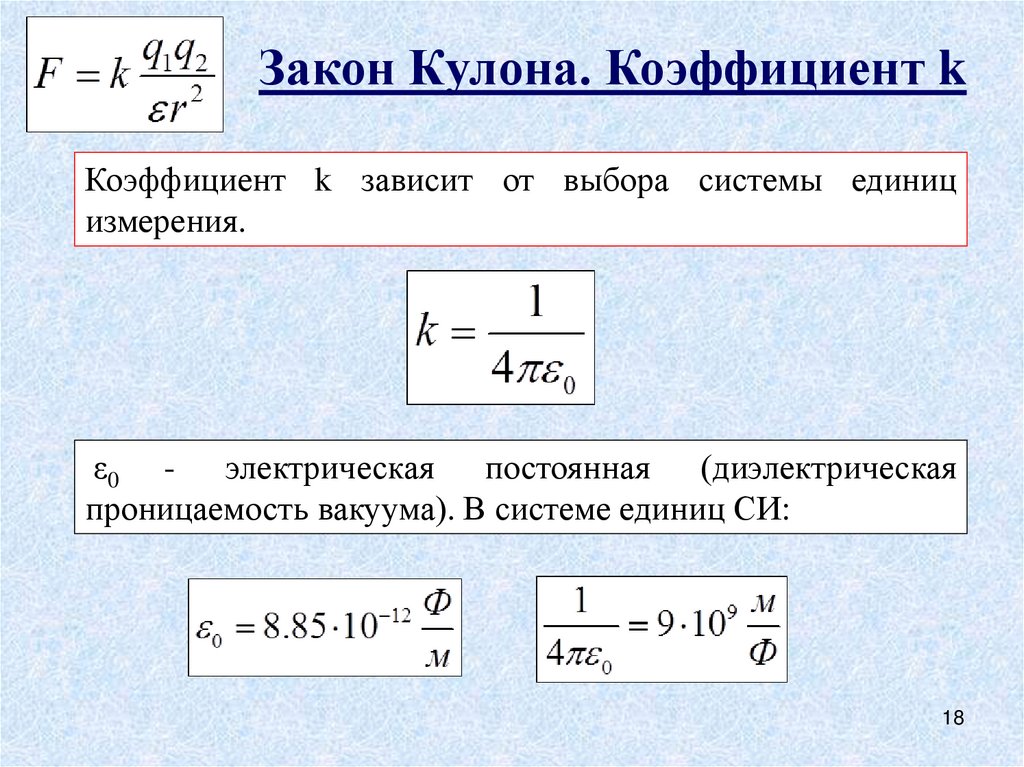 Закон Кулона. Коэффициент kКоэффициент k зависит от выбора системы единиц