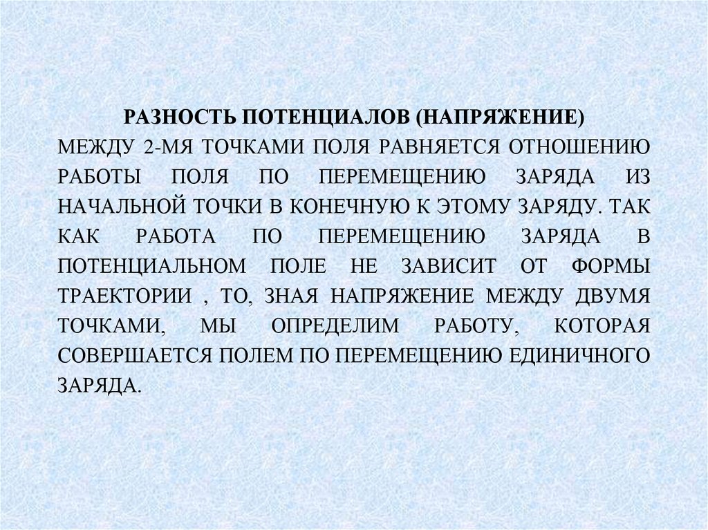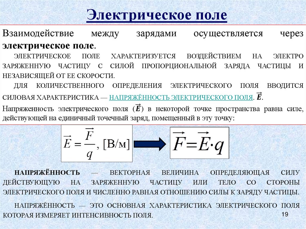 СИЛОВАЯ ХАРАКТЕРИСТИКА — НАПРЯЖЁННОСТЬ ЭЛЕКТРИЧЕСКОГО ПОЛЯ.