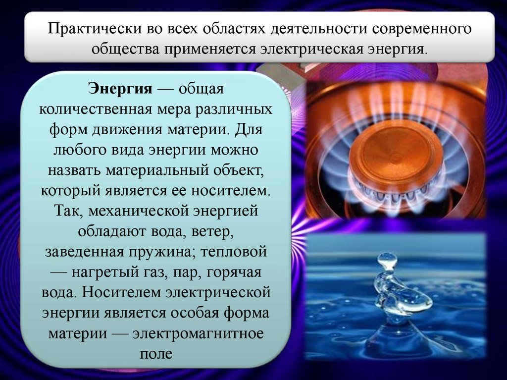 Практически во всех областях деятельности современногообщества применяется электрическая энергия.