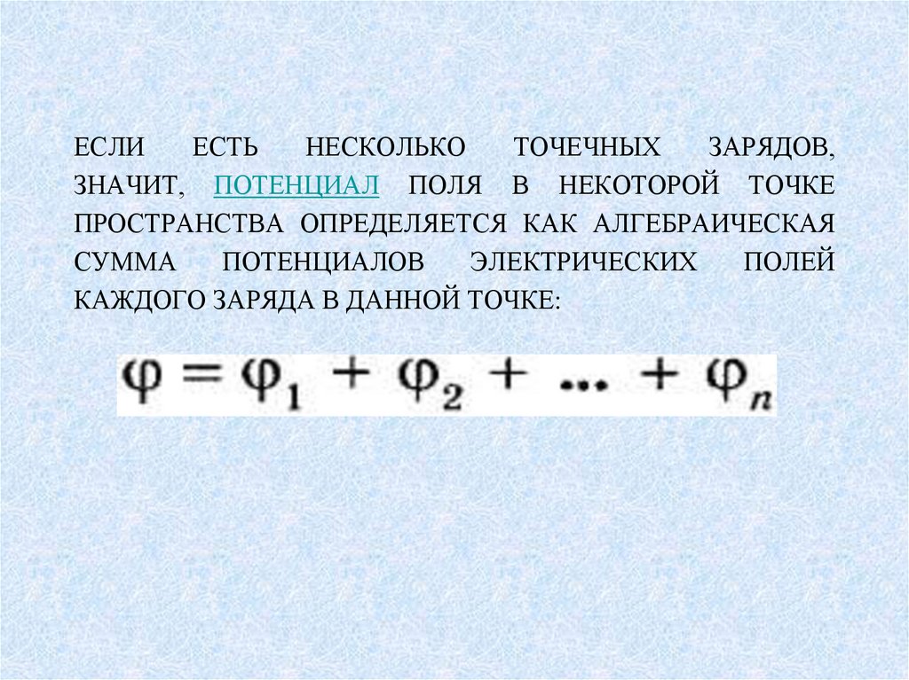 ДЛЯ КОЛИЧЕСТВЕННОГО ОПРЕДЕЛЕНИЯ ЭЛЕКТРИЧЕСКОГО ПОЛЯ ВВОДИТСЯ