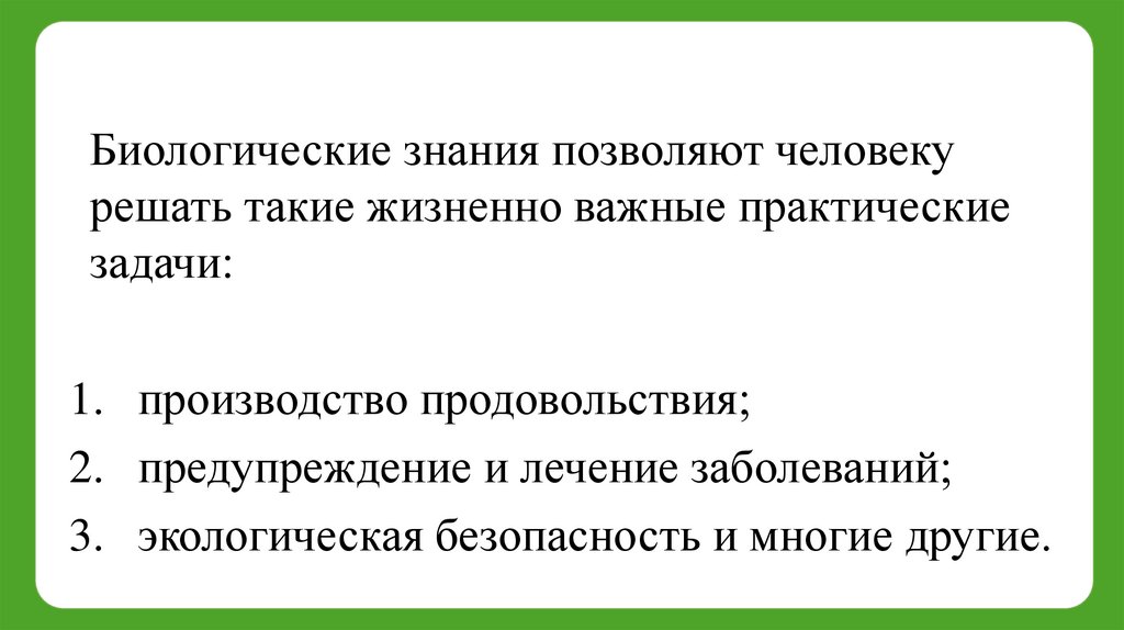 Биологические знания позволяют человекурешать такие жизненно важные практические
