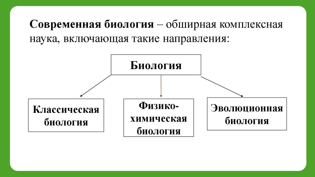 Современная биология – обширная комплекснаянаука, включающая такие направления: