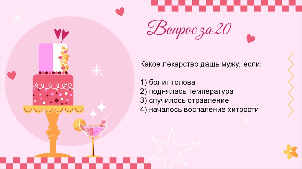 Вопрос за 20Какое лекарство дашь мужу, если: