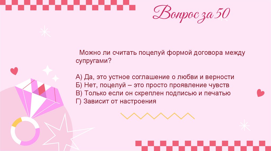 Вопрос за 50Можно ли считать поцелуй формой договора между