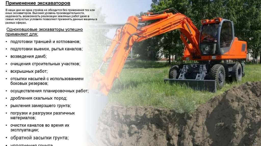 Применение экскаваторовВ наши дни ни одна стройка не обходится без применения тех или