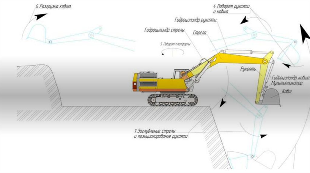 4. Поворот рукояти и ковша во