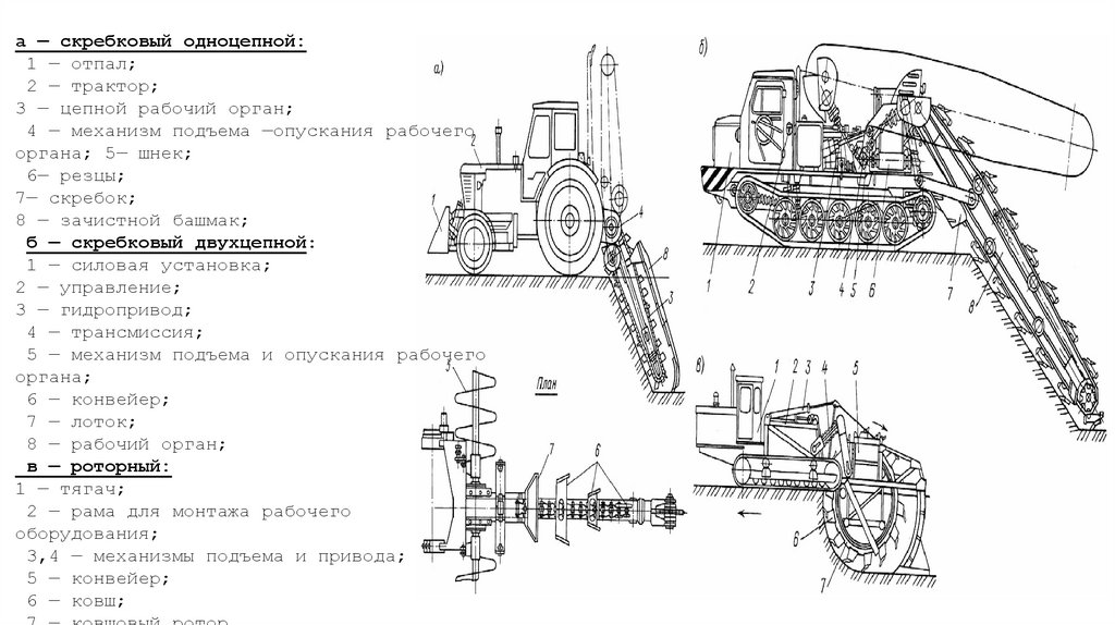 а - роторный траншейный;б - цепной траншейный;