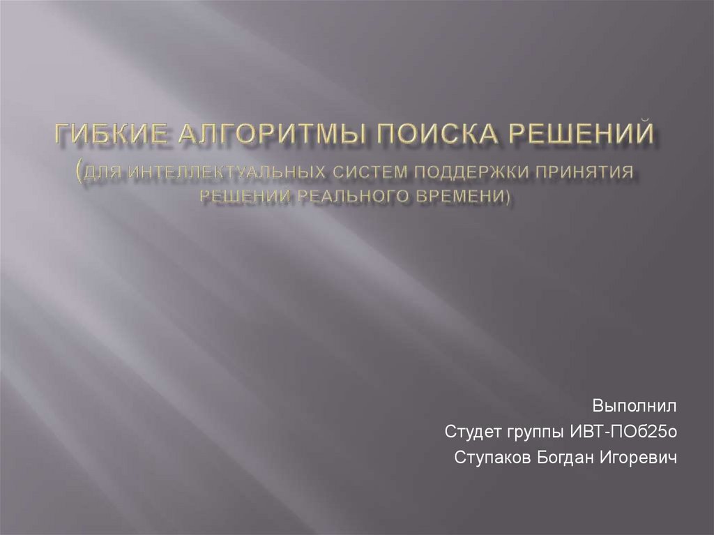 Гибкие алгоритмы поиска решений (для интеллектуальных систем поддержки принятия решений реального времени)