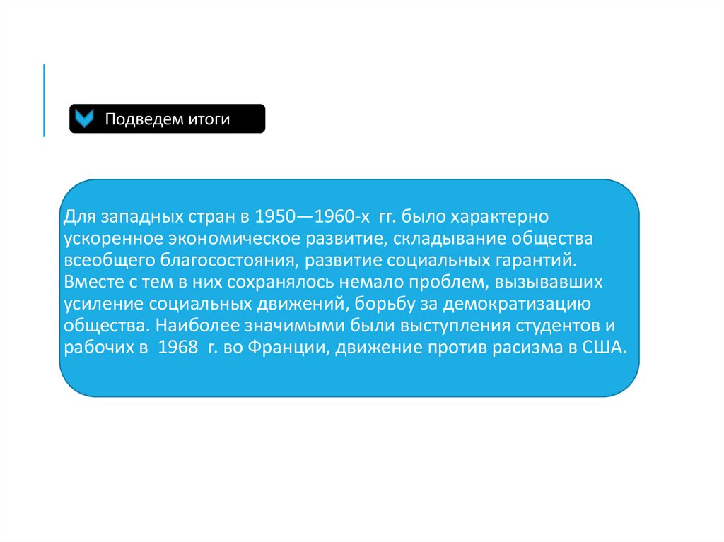 Подведем итогиДля западных стран в 1950—1960-х гг. было характерно