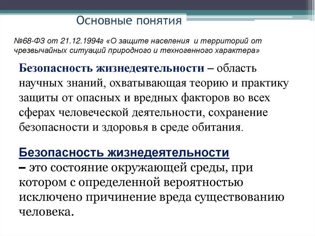 Основные понятия№68-ФЗ от 21.12.1994г «О защите населения и территорий от