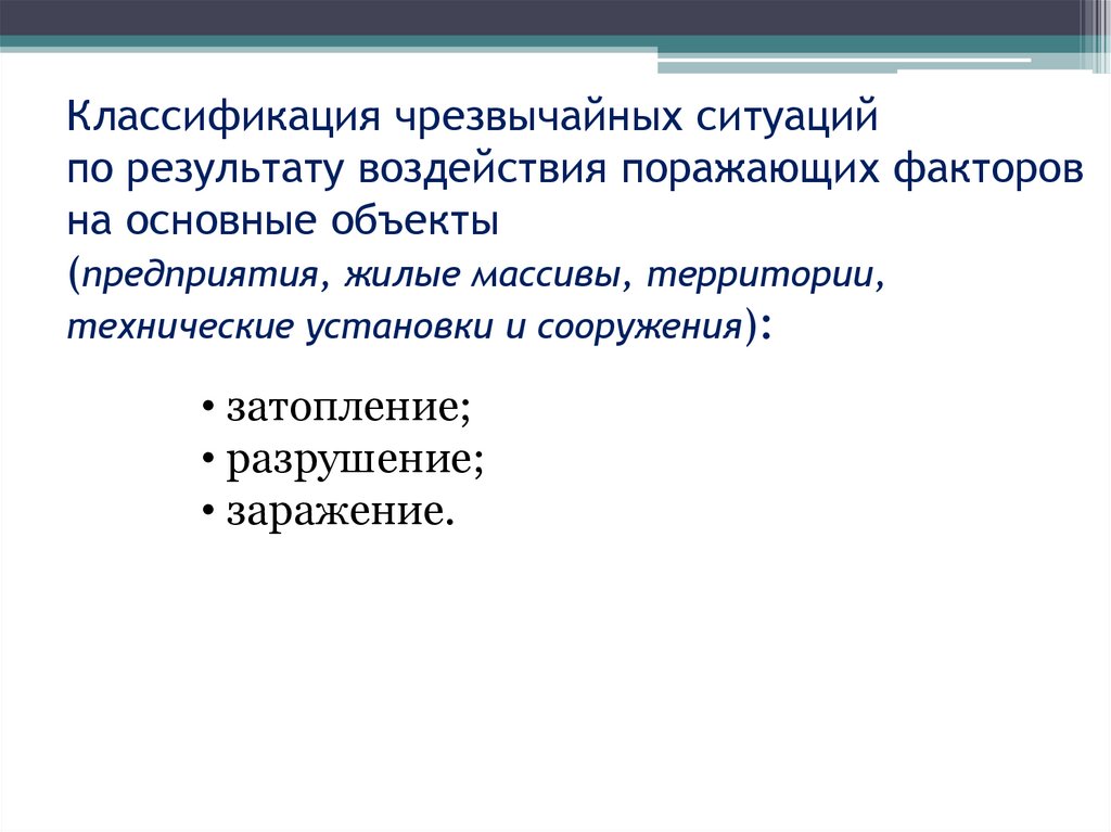 Классификация чрезвычайных ситуацийпо результату воздействия поражающих факторов
