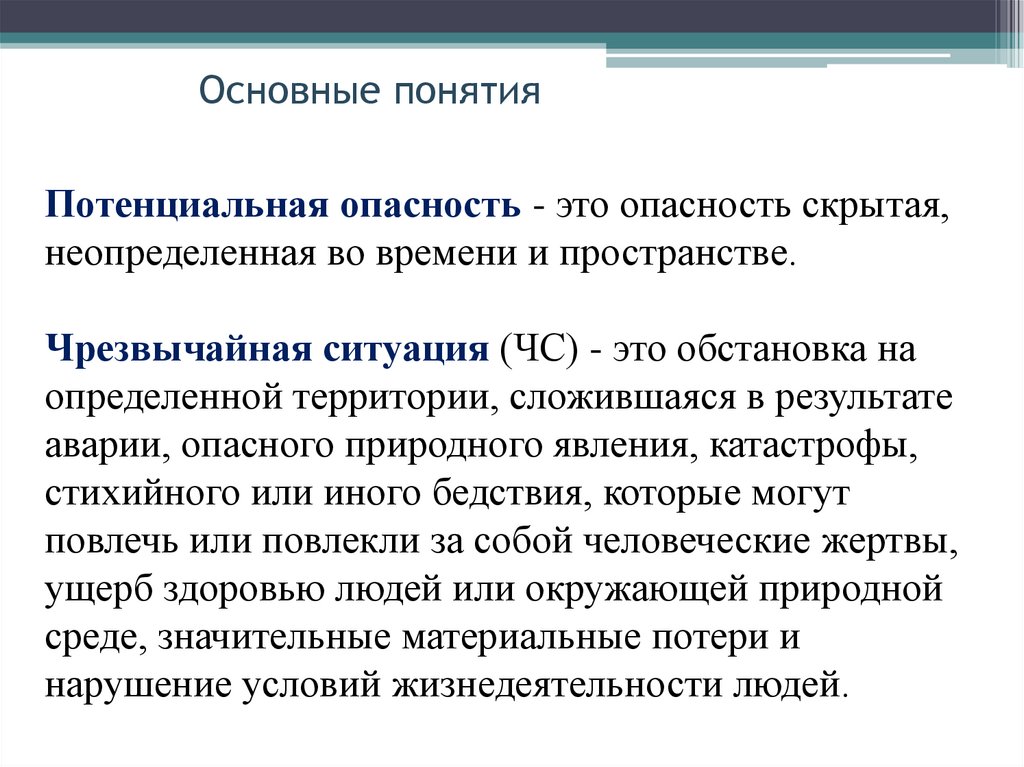 Основные понятияПотенциальная опасность - это опасность скрытая,