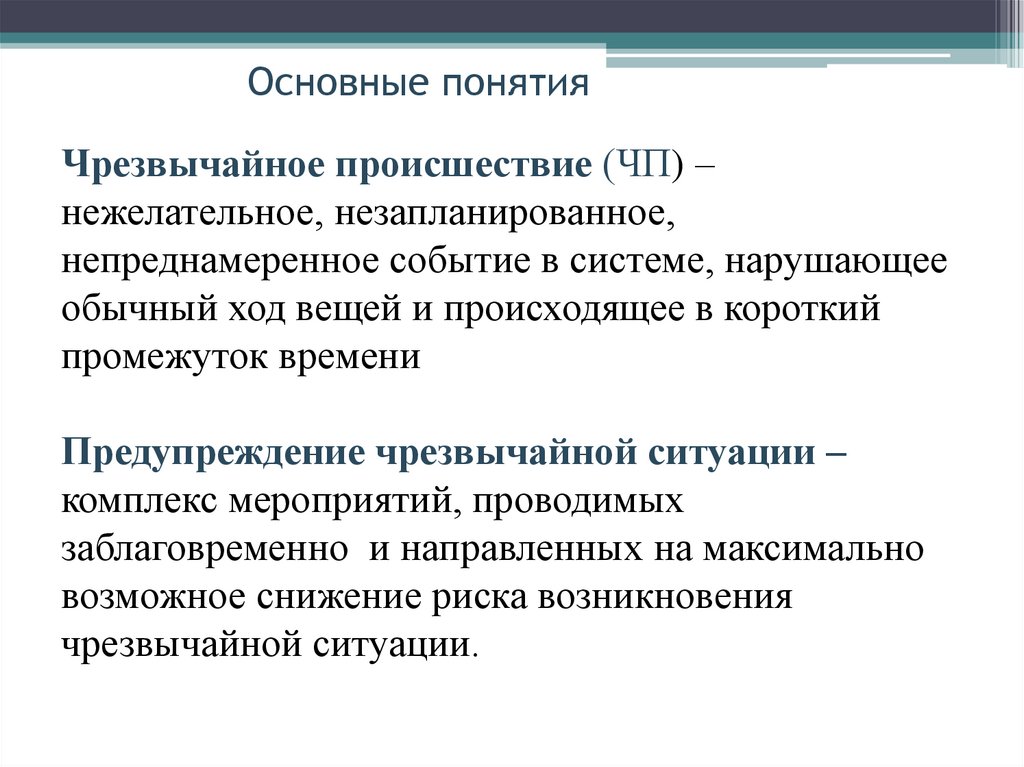 Основные понятияЧрезвычайное происшествие (ЧП) –