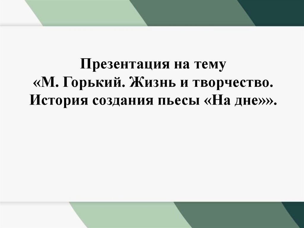 1. Презентация на тему «М. Горький. Жизнь и творчество. История создания пьесы «На дне»».