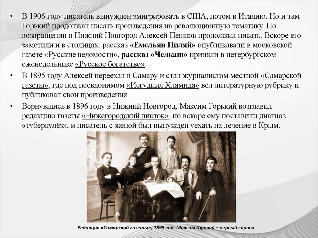 Вернувшись в 1896 году в Нижний Новгород, Максим Горький возглавил