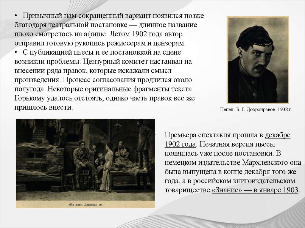 8. История создания пьесы «На дне»