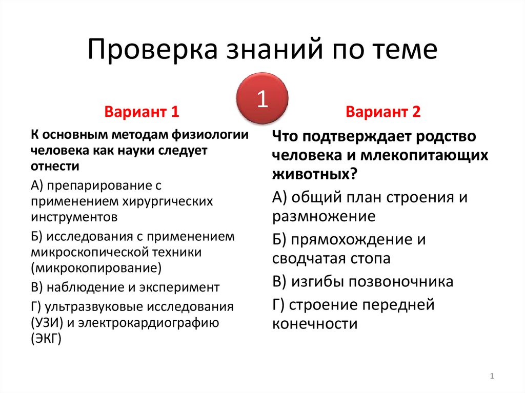 Строение и химический состав клетки. Проверка знаний. Вариант 1