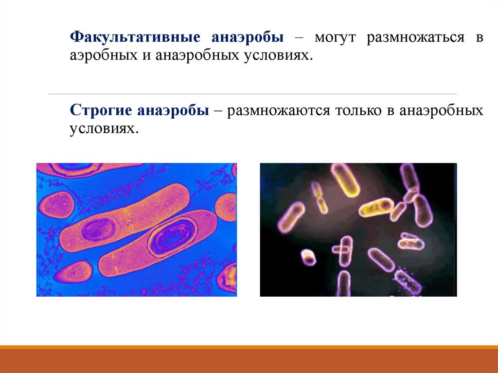 Строгие анаэробы – размножаются только в анаэробных