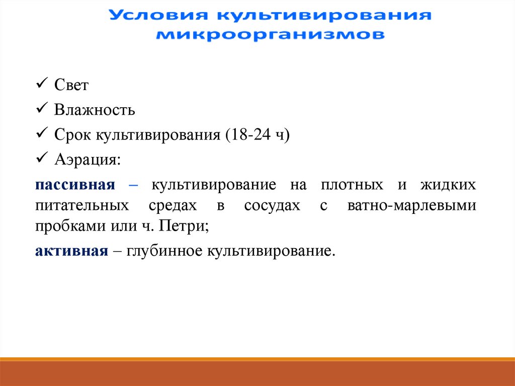 17. Условия культивирования микроорганизмов