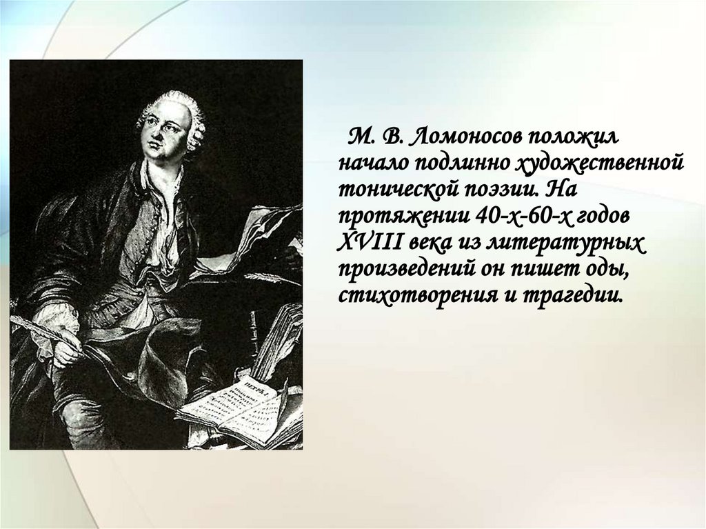 М. В. Ломоносов положилначало подлинно художественной