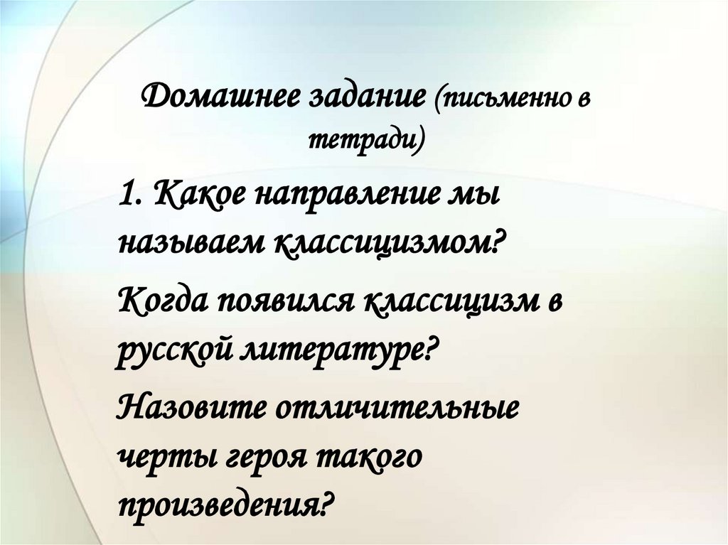 Домашнее задание (письменно втетради)