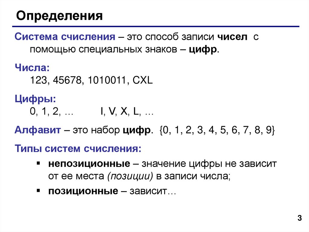 ОпределенияСистема счисления – это способ записи чисел с