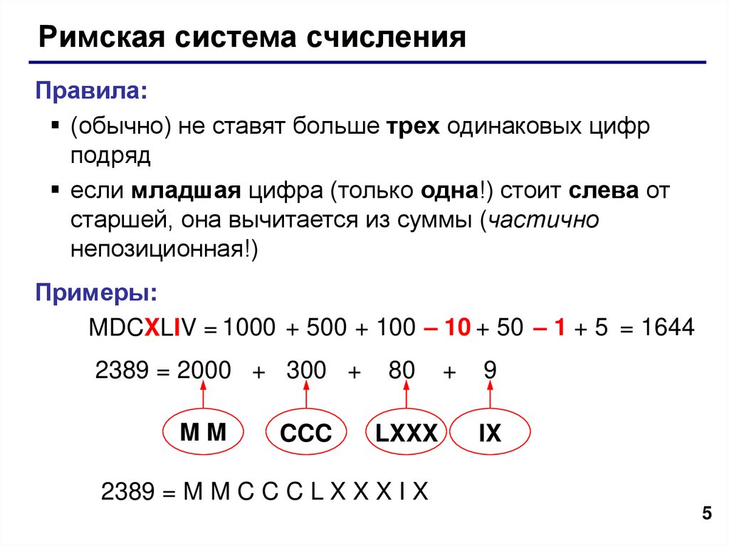 Римская система счисленияПравила: