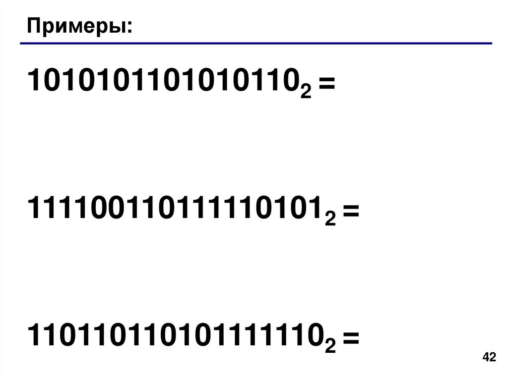 Перевод в двоичную систему• трудоемко