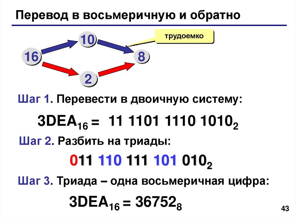 Перевод в восьмеричную и обратнотрудоемко
